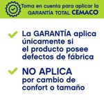 | Garantía De Proveedor | Toma en cuenta lo siguiente: En CEMACO, tienes 30 días de garantía a partir de la fecha de compra. Si el artículo tiene defecto de fábrica o no funciona como se describe en las instrucciones, durante los primeros 30 días, puedes devolverlo o cambiarlo por otro producto. Recuerda que debes de presentar tu factura original. Este producto cuenta con garantía de la marca durante 10 años a partir de la fecha de compra. Si el producto tiene algún defecto de fábrica o no funciona como se describe en las instrucciones, durante los años de garantía indicados con anterioridad, podemos brindarte los datos del centro de servicio de la marca para que reclames tu garantía (Sujeto a políticas de la marca). Es importante destacar que la garantía sólo cubre defectos de fábrica, no cubre daños causados por mal uso. (Leer consideraciones importantes en el inciso de observaciones). Para aplicar a la garantía, el producto debe tener su empaque original (Aplica únicamente para los 30 días de garantía Cemaco). No aplica por cambio por confort, tamaño o diseño;Para brindarte un mejor servicio y evaluar la garantía del producto, un técnico especializado de la marca realizará una visita para diagnóstico. Para consultas sobre el proceso de garantía comunícate al 2499-10045 |